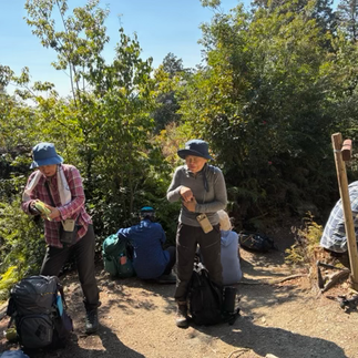 ねじりまんぽ 9:00→日向大神宮 9:15→天の岩戸 9:20→七福思案処9:35→大日山 10:10→大文字山 10:55~(昼食)~11:30→出会い坂11:45→火床 12:18→大文字山 12:58→七福思案処 14:12→神明山14:18→疎水大神宮橋 14:40(解散)